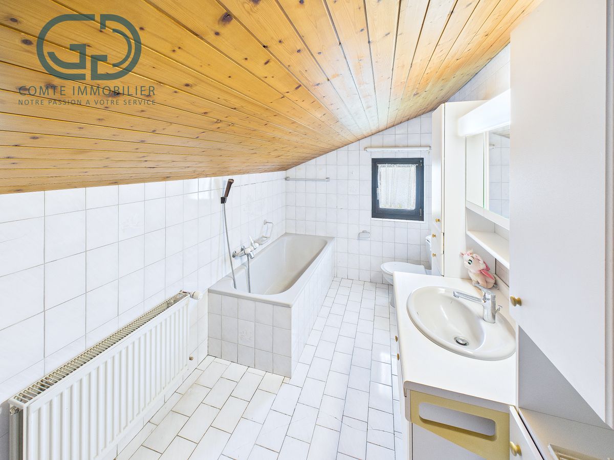 Située dans un quartier résidentiel calme et ensoleillé de Courroux, cette maison individuelle construite en 1960 et rénovée en 1990 puis en 2013 offre une surface habitable de 186 m² et une surface utile totale de 271 m², est bâtie sur une belle parcelle de 950 m². Elle se distingue par sa configuration composée de deux appartements indépendants, idéale pour un projet familial, un investisseur ou un propriétaire souhaitant combiner logement et rendement locatif.Distribution intérieureSous-solLe sous-sol comprend un couloir de distribution, une cave, un local technique, une chambre supplémentaire, un local citerne ainsi que deux garages. Ces espaces offrent de belles capacités de rangement et de stockage, ainsi qu'un accès pratique aux installations techniques et à l'extérieur.Rez-de-chausséeLe premier appartement, situé au rez-de-chaussée, propose une cuisine fonctionnelle, un séjour lumineux avec cheminée française, trois chambres spacieuses, une salle de bains et un couloir de distribution. Le salon mène à une terrasse extérieure orientée de manière à profiter d'un excellent ensoleillement, parfaite pour les repas d'été ou les moments de détente.1er étageLe second appartement se trouve au 1er étage et dispose d'un hall de distribution, d'une cuisine, d'un séjour accueillant, d'une chambre et d'une salle de bains. Cet étage offre une belle luminosité et une vue dégagée sur le quartier.ComblesLes combles, non habitables, offrent un volume supplémentaire utilisable pour le stockage ou pour un futur aménagement selon les besoins du propriétaire.Extérieurs et aménagementsLa propriété repose sur une parcelle de 950 m², soigneusement entretenue et offrant un bel espace extérieur. Un réduit d'environ 32 m³ complète les aménagements extérieurs, idéal pour le rangement du matériel de jardin. Les deux garages et plusieurs places de stationnement extérieures assurent une grande praticité pour les habitants et les visiteurs.Confort et potentielLe chauffage est assuré par un système au mazout, distribué par vannes thermostatiques, garantissant un confort homogène dans toute la maison. Le salon érigé lors de l'extension en 1990, possède une distribution de chauffage au sol.