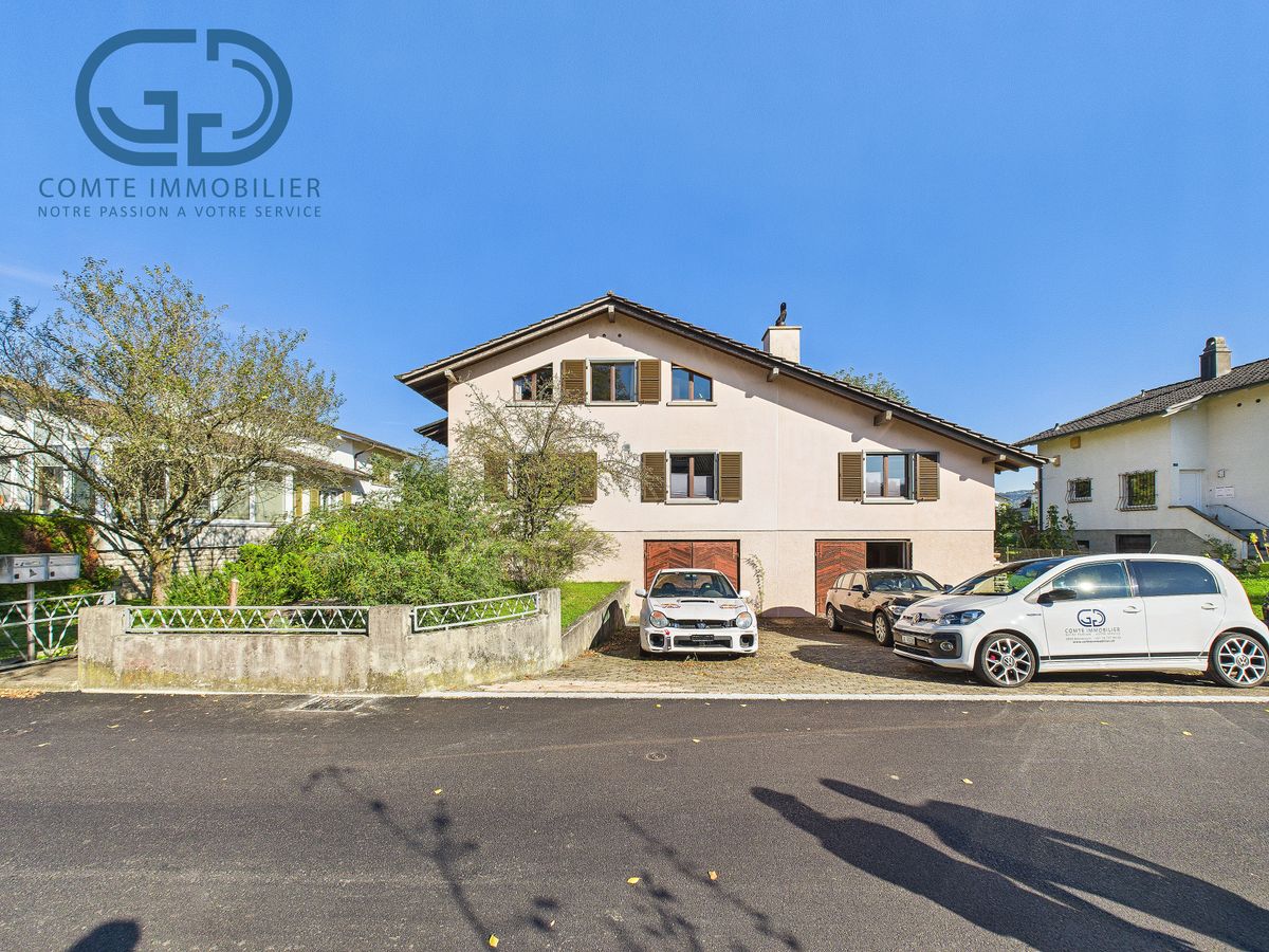 Les appartements nécessitent des travaux de rafraîchissement et de modernisation, permettant au futur acquéreur de les adapter à ses goûts et besoins.Situation et commoditésL'emplacement de la maison est un véritable atout : à quelques minutes à pied des magasins d'alimentation, boucheries, restaurants, cafés, tea room et banque, tout en bénéficiant d'un environnement paisible. L'arrêt de bus situé à seulement 3 minutes à pied assure une connexion facile vers Delémont et les localités environnantes.Un bien à fort potentielCette maison à Courroux combine emplacement privilégié, grand espace intérieur, deux logements indépendants et belle parcelle ensoleillée, offrant de nombreuses possibilités d'usage : habitation familiale, location, ou investissement.