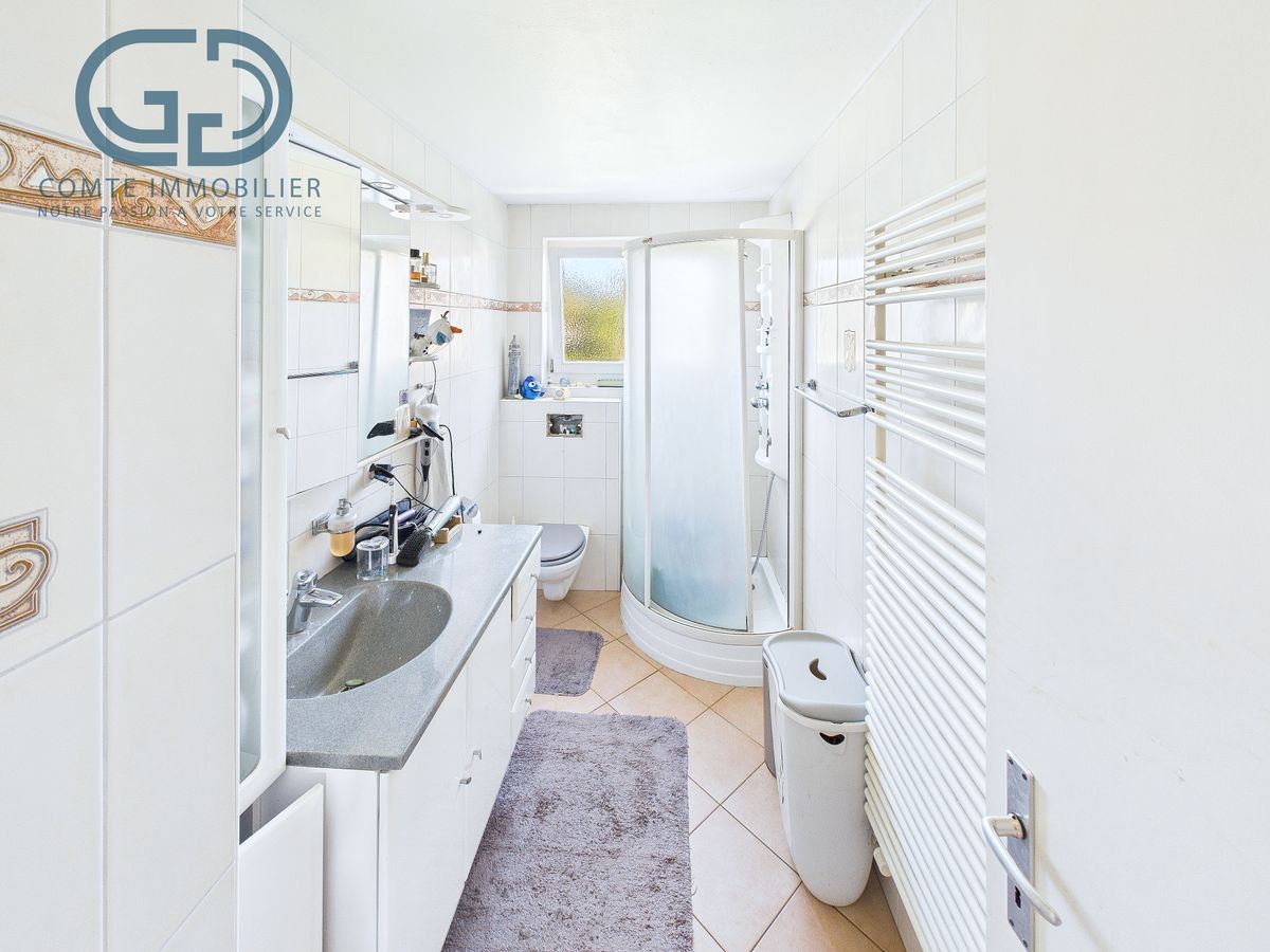 Située dans un quartier résidentiel calme et ensoleillé de Courroux, cette maison individuelle construite en 1960 et rénovée en 1990 puis en 2013 offre une surface habitable de 186 m² et une surface utile totale de 271 m², est bâtie sur une belle parcelle de 950 m². Elle se distingue par sa configuration composée de deux appartements indépendants, idéale pour un projet familial, un investisseur ou un propriétaire souhaitant combiner logement et rendement locatif.Distribution intérieureSous-solLe sous-sol comprend un couloir de distribution, une cave, un local technique, une chambre supplémentaire, un local citerne ainsi que deux garages. Ces espaces offrent de belles capacités de rangement et de stockage, ainsi qu'un accès pratique aux installations techniques et à l'extérieur.Rez-de-chausséeLe premier appartement, situé au rez-de-chaussée, propose une cuisine fonctionnelle, un séjour lumineux avec cheminée française, trois chambres spacieuses, une salle de bains et un couloir de distribution. Le salon mène à une terrasse extérieure orientée de manière à profiter d'un excellent ensoleillement, parfaite pour les repas d'été ou les moments de détente.1er étageLe second appartement se trouve au 1er étage et dispose d'un hall de distribution, d'une cuisine, d'un séjour accueillant, d'une chambre et d'une salle de bains. Cet étage offre une belle luminosité et une vue dégagée sur le quartier.ComblesLes combles, non habitables, offrent un volume supplémentaire utilisable pour le stockage ou pour un futur aménagement selon les besoins du propriétaire.Extérieurs et aménagementsLa propriété repose sur une parcelle de 950 m², soigneusement entretenue et offrant un bel espace extérieur. Un réduit d'environ 32 m³ complète les aménagements extérieurs, idéal pour le rangement du matériel de jardin. Les deux garages et plusieurs places de stationnement extérieures assurent une grande praticité pour les habitants et les visiteurs.Confort et potentielLe chauffage est assuré par un système au mazout, distribué par vannes thermostatiques, garantissant un confort homogène dans toute la maison. Le salon érigé lors de l'extension en 1990, possède une distribution de chauffage au sol.